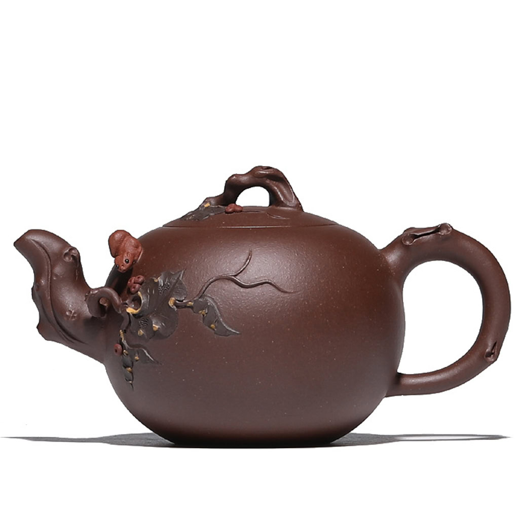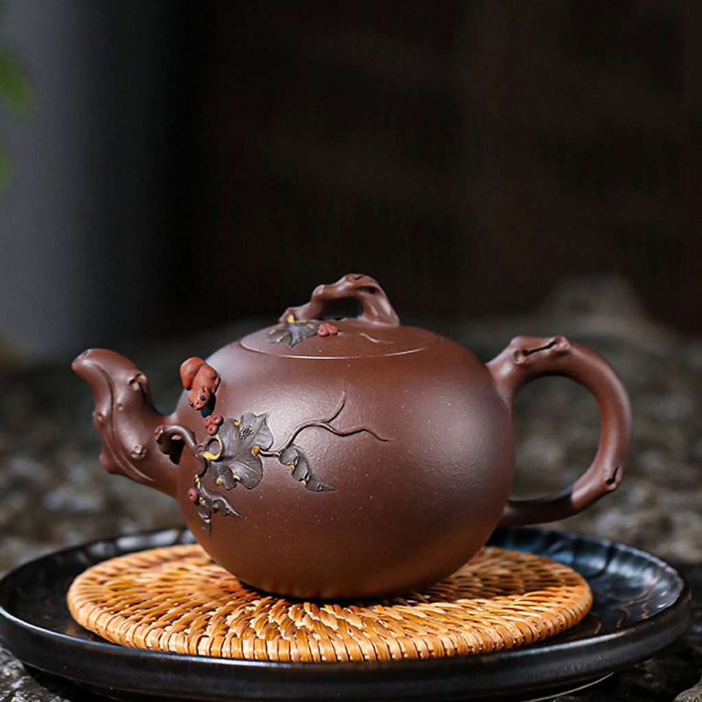 Trong nghệ thuật thưởng trà, chiếc ấm tử sa không chỉ là dụng cụ mà còn là linh hồn, là nơi gửi gắm tinh hoa đất trời và tài hoa nghệ nhân. Hôm nay, chúng tôi hân hạnh giới thiệu đến quý trà nhân một tác phẩm đỉnh cao, hội tụ đầy đủ yếu tố thẩm mỹ, công năng và giá trị sưu tầm: Ấm Tử Sa Nho Sóc Phú Quý Tử Nê 210ml. Được chế tác bởi bàn tay tài hoa của Nghệ nhân Mỹ thuật Thủ công Quốc gia Đinh Hồng Bân, chiếc ấm này không chỉ đơn thuần là một vật phẩm, mà là một bức tranh thiên nhiên sống động, mang theo thông điệp về sự sung túc và niềm an lạc.