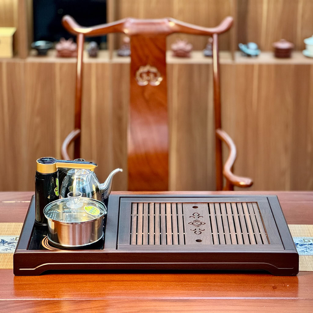 Bàn Trà Gỗ Hương Tích Hợp Bếp Điện Cao Cấp, Tiện Lợi Pha Trà